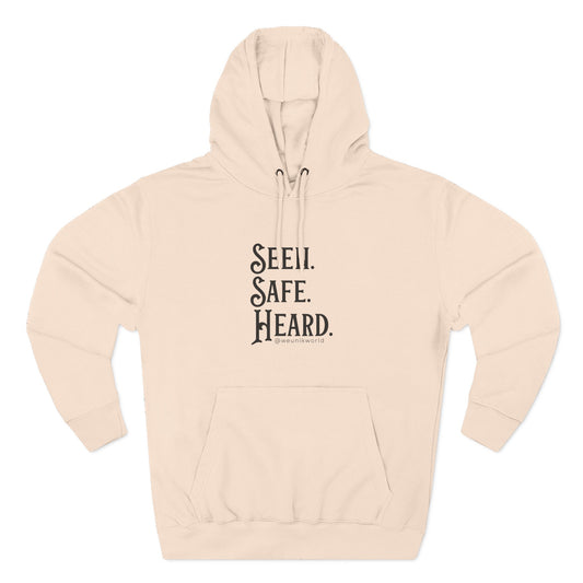 Seen. Safe. Heard Fleece Hoodie — Three-Panel Cozy Sweatshirt