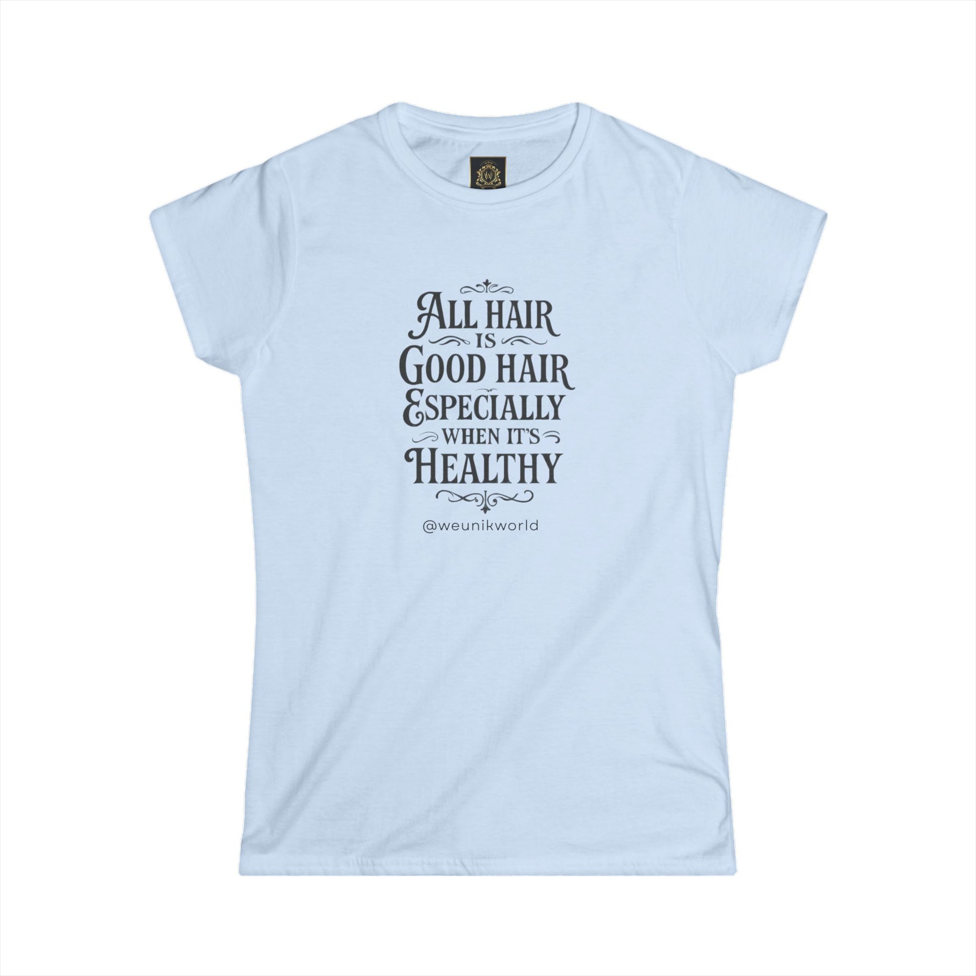 Women's Tee — "All Hair Is Good Hair, Especially When It's Healthy" Vintage Script